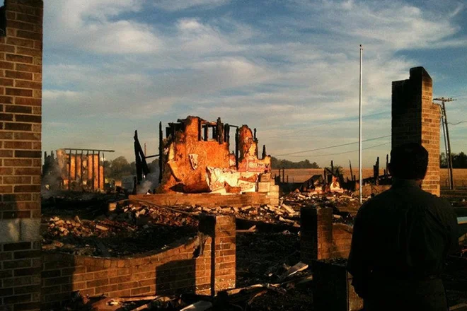 The Illinois attacks comes on the heels of an incident in Joplin, Missouri, where a mosque was reduced to ashes by a powerful firelast Monday. Although authorities are investigating whether it was an act of arson, a previous fire at the mosque over the July 4 weekend was determined to be arson. Elsewhere, a mosque in North Smithfield, Rhode Island was vandalized by a man who “head-butted” and pulled down signage. Teens were arrested on hate crime charges for taunting worshippers by throwing eggs, oranges and shooting bb pellets at a mosque in Hayward, California. Vandals defaced the Grand Mosque of Oklahoma City with paintballs, and, in an especially malicious incident, womenhurled pig legs at a mosque site in Ontario, California, while people were leaving the temporary prayer space.